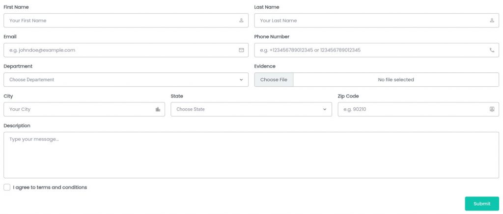 ├─ AdaptiveWrap 2 Columns(First Name, Last Name, Email, Phone Number, Department, Evidence)