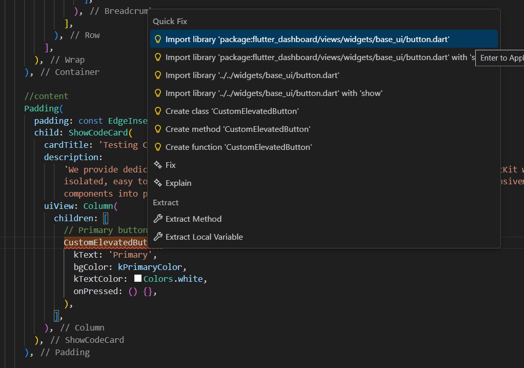 This makes it straightforward to adopt any UI component by simply copying the code snippet and importing the widget into your screens.
