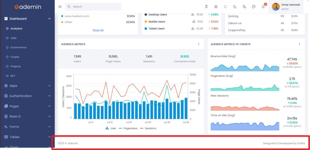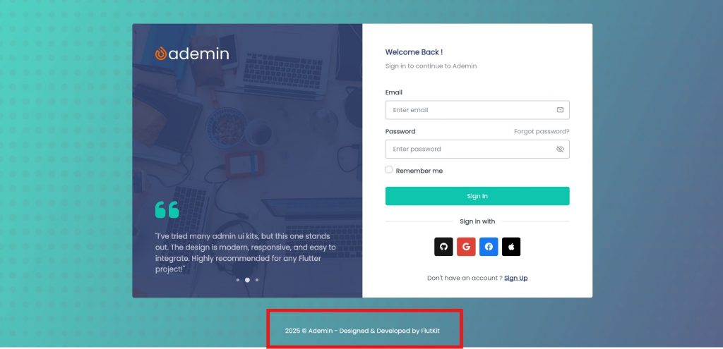 Feel free to change icons, add links, or insert your own widgets—the footer will adapt dynamically based on the widgets you define inside the configuration file.